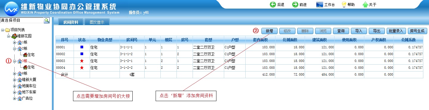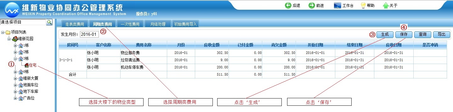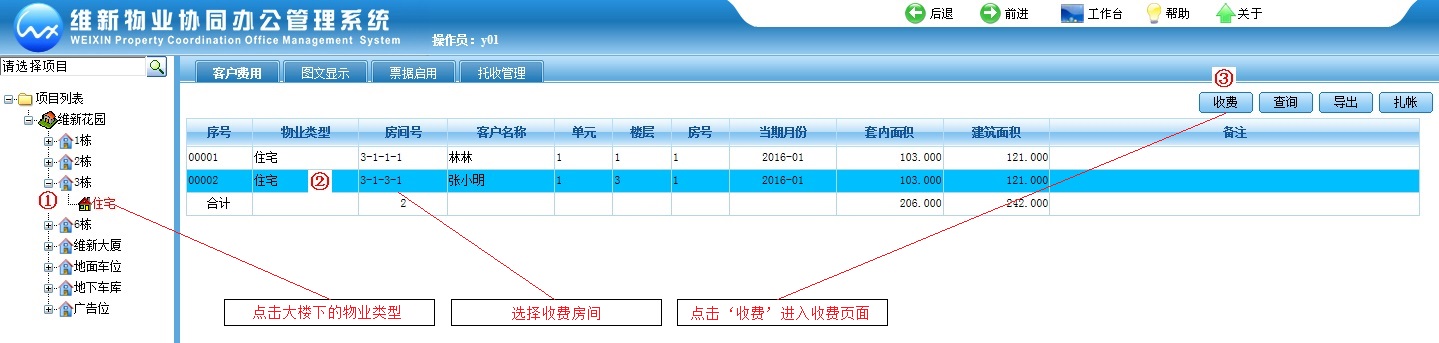 为了让初次使用维新物业协同办公管理系统WEB版的物业收费人员快速掌握收费操作,以下用图文方式描述物业资料录入、住户资料录入、费用生成、窗口收费等具体操作。