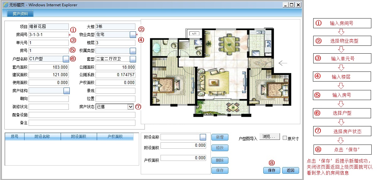 上图中点击‘新增’后进入房产资料录入页面,如下图: